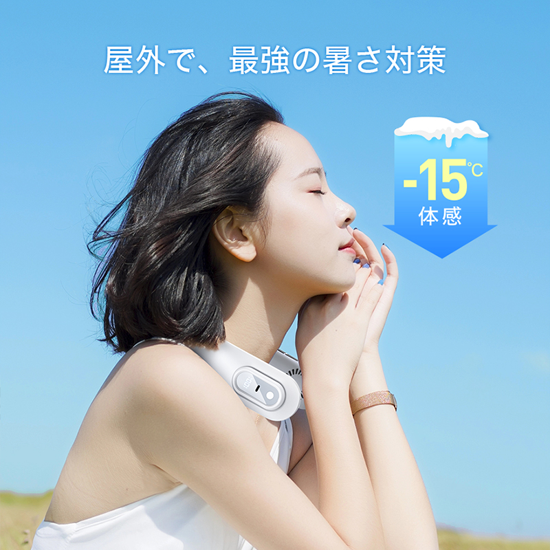 首にかけるだけでなく、風向きを自由に調整できるので、最適な風を感じることができます。